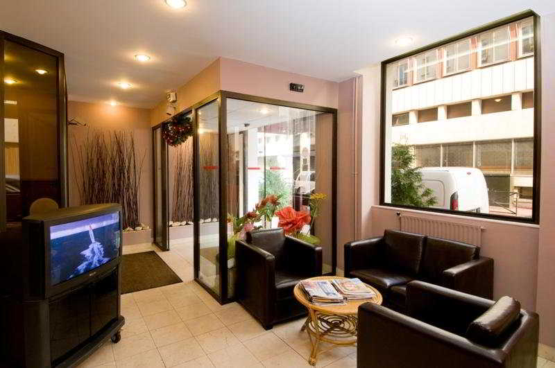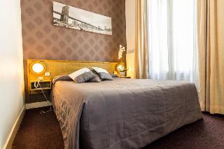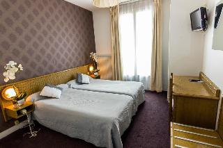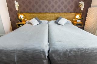 The hotel is located 200 m from Anatole France metro station, close to the Champerret Exhibition Centre, the Champs Elysées, the Palais des Congrès and the Arche de la Défense. Paris Orly is some 20 km away, while Charles de Gaulle Airport is approximately 30 km from the hotel.||This hotel offers a total of 39 renovated rooms where guests will find everything they need for a comfortable and relaxing stay. The establishment also has its own lovely flower garden. It welcomes guests with a luggage service, a concierge service and free WLAN Internet access. Further facilities include 24-hour reception and check out, a hotel safe, a café and a breakfast room.||All rooms are equipped with a private bathroom with shower and bath, a hairdryer, a TV with Canal+ and satellite channels and a minibar as standard. They have recently been fully renovated. Guests are also provided with Internet access, a safe, a microwave and tea and coffee making facilities.||Guests can enjoy a continental breakfast in the dining room or on the terrace.