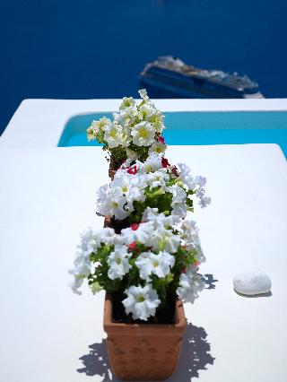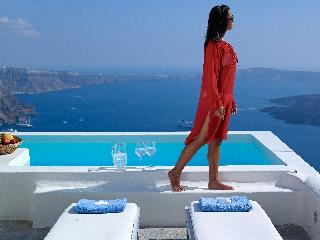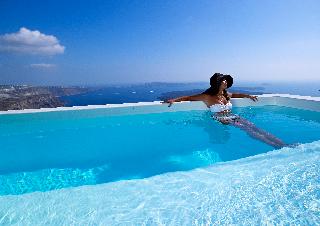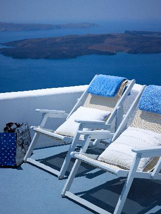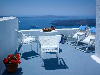 This small hotel, featuring magnificent villas, is superbly located on the Caldera cliff, 220 m above sea level, and offers guests breathtaking views of the ancient volcano and of the Aegean blue sea. It is built according to the traditional Aegean Cycladic architecture. Fira, the capital of the island, can be reached within a short car drive, since it is only 2 km from the hotel. The port and the airport are approximately 10 km away.