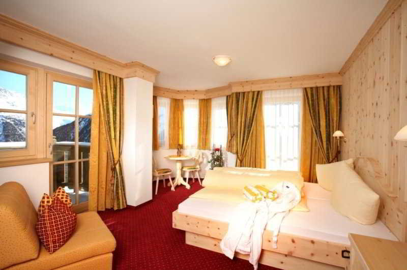 This family-friendly ski hotel is located at 2,000 m above sea level about 7 km from the centre of Sölden, surrounded by a fantastic skiing and hiking area. The ski area is only 50 m from the property and there is also direct access to the glacier.||This small and charming Alpine-style establishment is air-conditioned and has 34 rooms. Guests are welcomed in the lobby, which offers a 24-hour reception and a 24-hour check-out service, as well as a hotel safe, lift access to the upper floors and a newspaper stand. Additional amenities include a hairdressing salon and guests can also enjoy nice evenings in the hotel bar or enjoy a film in the cinema room. They can have a drink at the café and dine in the restaurant, which is a must for its elegant and cosy atmosphere. Wireless Internet access is available and visitors can also take advantage of the room and laundry services.||All rooms are en suite and feature a shower, bath and hairdryer, as well as a double or king-size bed, a direct dial telephone, satellite/cable TV and a safe. Additional amenities include an ironing set, air conditioning, central heating and a balcony or terrace.||Guests can admire the peace and beauty of the surrounding area from the sun terrace or the panoramic sauna. Additional activities include table tennis, pool/snooker, bocce, golf, horse riding and entertainment programmes for adults and children.||Guests are served a breakfast buffet each morning. Lunch and dinner can be enjoyed à la carte or selected from various set menu options.