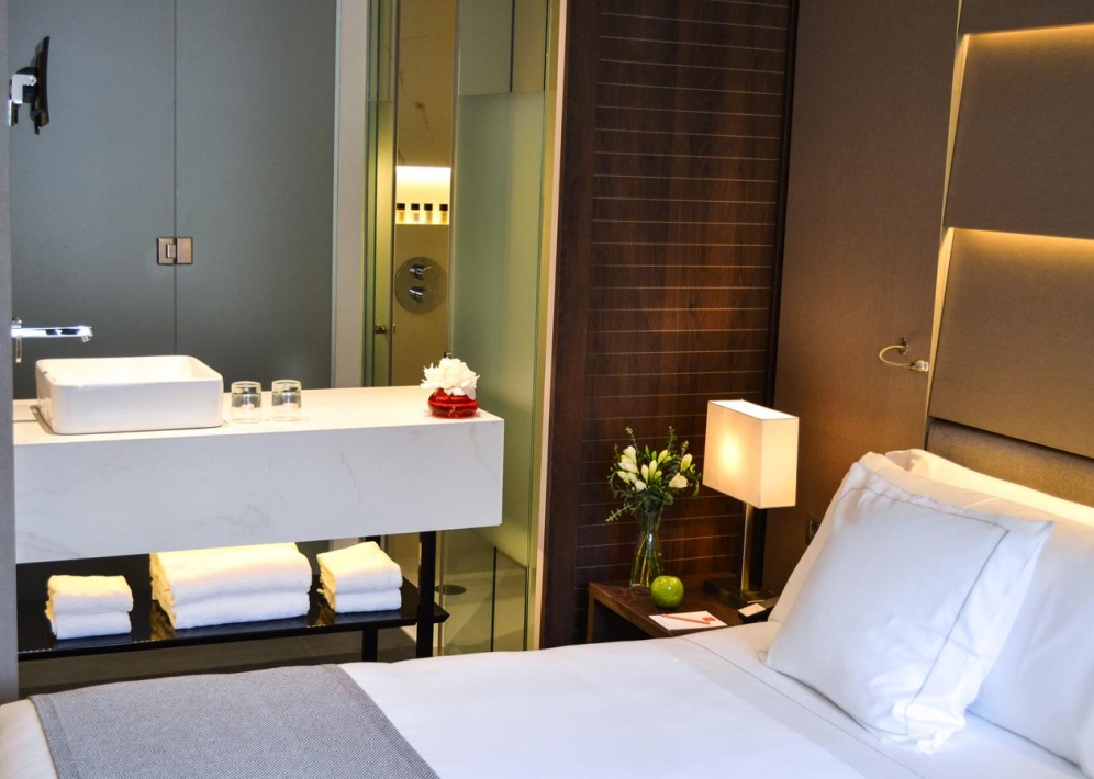 The hotel is located in the Eixample district of central Barcelona. The hotel is three blocks from Passeig de Gracia's smart boutiques and Gaudi's La Pedrera (Casa Mila). Countless shopping and entertainment venues and inviting restaurants and bars are all just a few minutes walk from the hotel. The Old Town, Gaudi's La Sagrada Familia cathedral and the lively promenades of Las Ramblas are within two kilometres. Plaça Catalunya and the Gothic Quarter are just a 15-minute walk from the hotel and there is a metro station just 400 m away.