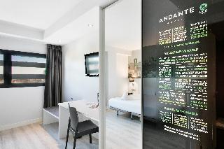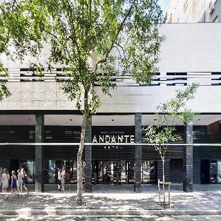 Situated in the lively Raval Quarter, in the Ciutat Viella District, the Andante hotel sets an example of a great low cost and sustainable hotel. Due to its perfect location, this hotel is ideal for both business and leisure travellers.|The hotel is close to Las Ramblas, the Maremágnum leisure area and the Para.lel. theatre district, with easy connections to the airport and Montjuïc fair centres. The Barceloneta Beach is just a quick ride away.|All the rooms are exterior rooms, comfortable and practical, decorated in a contemporary style. There is an plunge pool at the hotel's rooftop, with magnificent panoramic views of the city. The hotel also features a gym and a 24-hour vending area at the lobby, equipped with microwaves ad state-of-the-art vending machines. The hotel offers a breakfast buffet with show cooking that guests can also enjoy on the ground floor terrace.