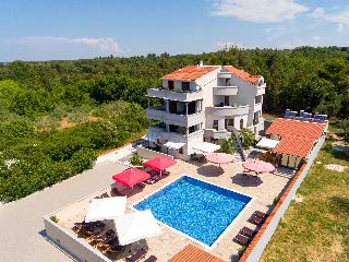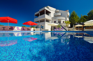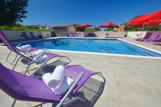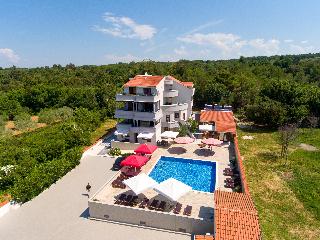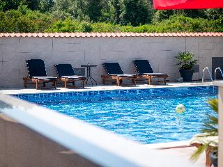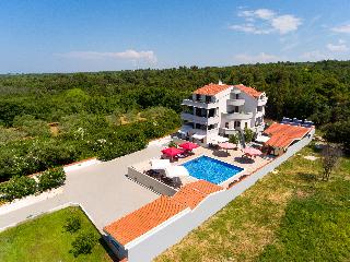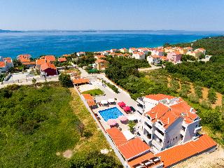 Villa Plat is a new Villa situated in Kožino which is one of the settlements of Zadar's Riviera. This affordable escape surrounded by beautiful gardens with extensive green and spacious area of 2.500m2 of private property monitored by video surveillance and reserved parking for our guests is the essence of feeling secure and yet comfortable within your own privacy. Peace and quiet just about explains our accommodation to our guests as we assure absolute exclusivity.||Romantic and cozy! Our place is very unique for a few reasons. We have a great place to unwind without anybody bothering you nearby, especially for bigger families or groups. We are on a 2500m2 property and safely secured. We also have a wonderful restaurant with great homemade and homegrown food. Every night for dinner we have several choices of platters you can choose to feast on. We also prepare freshly caught fish daily! Just sit back with your family besides the pool or walk by the sea and unwind. Enjoy your vacation with us, we will make it happen for you.||The city of Zadar is only a few minutes away from our Villa. It is a very interesting and charming place to visit in the day and night time. The nightlife is very active in the summer time with many bars and cafes open 24/7. Zadar offers many museums and monuments to visit and explore.||We also offer private tours of the national parks, and we cooperate with local entrepreneurs that do the tours of the local islands and coast line sights. Easy access to pool area and parking. Also there are bike rentals available upon request. Perfect for couples on weekend getaways or just to relax and do some sightseeing. Your 1 night fee includes breakfast buffet. Half Board and full board arrangements are available.|