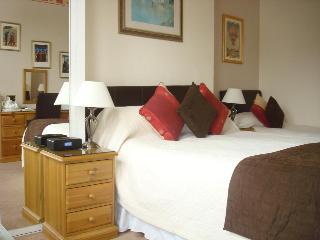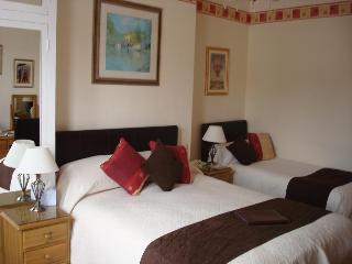 Professional, clean, comfortable accommodation with warm hospitality and a great breakfast! Offering free WiFi, Sky Sports, modern en-suite facilities and car park, the Victorian charm of our accommodation, Aquae Sulis Guest House, has been sympathetically maintained and combined with all the modern facilities expected by today's sophisticated traveller. A perfect spot to unwind and relax.. David and Jane Carnegie welcome you to our 14 room 4 Star family-run guest accommodation with car park and unrestricted on-road parking just over a mile and a half from Bath centre on the Bristol side of the city (maps on website). We are easy to find, set back off the A4 on the Bristol side of Bath and just a 30 minute level walk along the river Avon to the centre. We are just a mile and a half from the large long stay Charlotte Street Car Park, located just below the famous Royal Crescent on Queen Square. There is a bus stop outside our door with a service every 12 minutes to the city sights. All rooms have new bathrooms, most with larger shower, and wc en-suite as well as WIFI internet access, docking station, trouser press, iron & board, hairdryer and wide screen LCD TVs with Freeview and Sky Sports! Free Internet café too! Enjoy a beer in our tranquil garden in summer or our lounge with bar and open fire in winter. There are restaurants to suit all ethnic tastes in the centre (£10.00 taxi ride), or if you prefer to eat locally, two lovely riverside pubs offer great food, the Desh Indian restaurant is close by or we can offer you an evening snack here. SINGLE/DOUBLE/TWIN/FAMILY rooms.