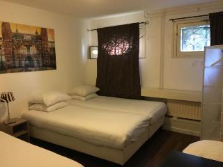 Characteristic for Amsterdam, the building of this hotel lies opposite the canal in the centre of the tourist district. The famous Rijksmuseum and the Spiegelgracht, the internationally well-known street for antique and art shops, also lie almost opposite the hotel.||Built in 1999, the 4 storey hotel has a total of 18 rooms, of which 12 are doubles and 6 are singles. The amenities include a pleasant lobby with a 24-hour reception, a hotel-safe, a restaurant with a non-smoking area as well as medical assistence.||The modern rooms feature warm, light colours and include their own Dutch paintings. The single rooms a shared shower/toilet on each floor. The double rooms offer a private shower and toilet. A hairdryer, a direct dial telephone, TV, ironing equipment and a cot all come as standard.