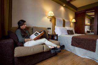 BALFAGÓN SPA Hotel is a boutique hotel located in the heart of Alto Maestrazgo, in the province of Teruel.||Awarded with the Tourist Merit Award, reveals a combination of traditional and contemporary style, while keeping the strong personality of the area thanks to the use of natural and high quality materials, such as stone and wood.||It has 47 rooms, of different kinds on three floors. All of them are pleasant rooms with air conditioning, TV, telephone, full bathroom, hairdryer, mini-bar, safe, room service and free WI-FI.||In the third floor you can found denominated rooms “With Charm”, where all room has slope ceiling and are superior category, each one of them have their own name.||Also, the hotel have other services as a living room, lounge bar and terrace, pub and inside parking.
