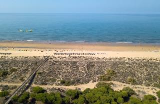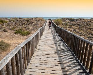 The eco-friendly hotel Barcelo Punta Umbría Mar enjoys a privileged location at the entrance of the fishing village of Punta Umbría, directly on the beautiful sandy beach and bordering the Los Enebrales Nature Park with countless pines, yet only a short drive away from the centre of Huelva.|The hotel is built in Andalusian style, surrounding a lovely pool landscape. It has bright and modern rooms, some of them with marvellous sea views. Guests will appreciate a wide range of excellent services and amenities, such as a buffet restaurant with live show cooking, serving Andalusian cuisine, a Zen-spa and wellness area as well as various sports facilities.|In the surrounding area, guests may practise all kinds of water sports; several golf courses are within easy reach. This hotel is ideal for a holiday surrounded by dunes and wonderful nature, yet close to the picturesque centre of Huelva.