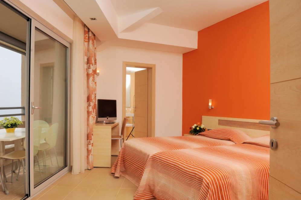 The apartment hotel is situated on the side of a hill, south of the town of Vrsar and Hotel Pineta, and adjacent to the sea. It is around 500 m from the town centre and 150 m from the port.||The apartment hotel was built terrace-style, consisting of numerous two or three-storey buildings in a row. Fully air-conditioned, the establishment comprises a total of 176 apartments and welcomes guests in a lobby with 24-hour reception and check-out service, a hotel safe and currency exchange facilities. Younger guests are sure to appreciate the children's playground and kids' club. The café, pub and restaurant provide dining and refreshments. Further facilities on offer to guests include Internet access, a laundry service, a car park and bicycle hire service.||The accommodation units are positioned in 4 rows of pavilions. The third and fourth rows are accessible by escalators, while other rows are accessible by stairs. All apartments have a fully equipped kitchen with fridge, microwave and tea and coffee making facilities. The en suite bathrooms are fitted with shower and hairdryer. The apartments are also equipped with double beds, a direct dial telephone, satellite/cable TV, radio, safe, air conditioning and a balcony or terrace.||The apartment hotel offers guests use of an outdoor swimming pool, children's swimming area, poolside snack bar and sun loungers and parasols which have been laid out for use. Active guests may take advantage of the aqua fit and aerobics classes, or go diving (with charge). Tennis (with charge), table tennis (with charge), basketball, volleyball, beach volleyball and minigolf (with charge) are further options. Entertainment programmes are available for children. Sun loungers are parasols are provided on the nearby beach.||A breakfast buffet is served each morning.