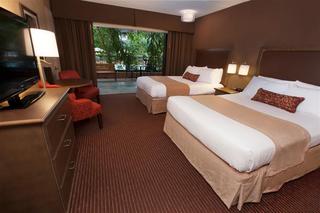 This beautifully landscaped resort-style Niagara Falls hotel is located on historic Lundy's Lane in Ontario. The elegant property is located just 2 kilometres from the banks of Niagara Falls in Ontario, Canada and offers a host of amenities and services to complement all travel plans. The hotel is near many outdoor activities such as hiking, tennis and exploring the falls. Travellers may choose a guest room with balcony views or a fireplace suite. Hotel amenities include an indoor heated pool, two hot tubs, a tropical indoor courtyard, meeting rooms and banquet facilities. Children will love the indoor Kid zone featuring a two-story play park, videogames and supervised activities for kids. This attractive establishment is less than 8 kilometres from many local attractions such as the Maid of the Mist, Horseshoe Falls and Marineland. Niagara Falls is host to several seasonal events, such as the Niagara Wine Festival or enjoy weekend fireworks and free concerts in the summer. The golf enthusiast will appreciate over 20 world class championship golf courses nearby.