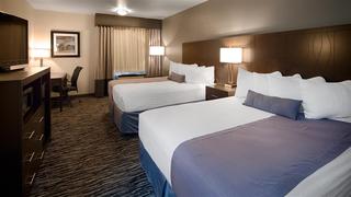 Business at Bell Helicopter and Pantex are just a couple of reasons many guests choose to stay at our conveniently located Amarillo hotel. If you're in town for the Big Texan Steak Ranch, it's just a short drive away from our hotel in Amarillo, TX. Whether you're here for business or leisure, depend on us to provide you with the southern hospitality you deserve. Rick Husband International Airport is nearby, only three and a half miles away, so it's easy to catch an early or connecting flight. Adjoining rooms are available too, so families or groups can stay connected while on vacation. Our pet-friendly Amarillo, TX hotel offers a free, full hot breakfast that includes waffles and cereal, yogurt, pastries, fruits and breakfast breads. Complete the most important meal of the day with cups of chilled juice or 100% Arabica coffee. The Palo Duro Canyon is nearby so to really enjoy a full day of exploration, a hearty breakfast is in order. Spend your trip visiting Wonderland Park, the American Quarter Horse Museum or the Amarillo Zoo. Cadillac Ranch and the Route 66 Motor Speedway are also popular attractions. Golf is a popular activity in the area as well. There are endless things to do near our Amarillo hotel, so start planning your itinerary now. Our friendly staff members are happy to offer tips and recommendations on places to eat, things to do and sights to see, too. A number of our Amarillo hotel guests are in town for business with Tyson, Bell Helicopter and Pantex. With the Amarillo Air Force Base (AFB) nearby, we also welcome service men and women along with their loved ones to our property. Our superior location makes it easy to get around town and the value and amenities are unbeatable. Book a quiet, cool room at the Best Western Santa Fe today for an easy, stress-free trip!