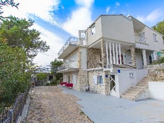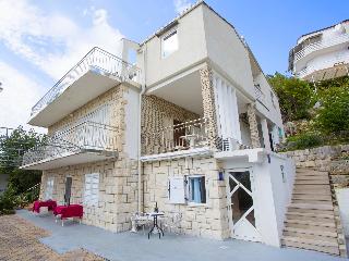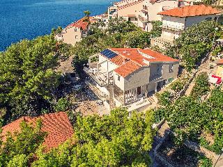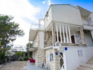 This apartment complex is located on the famous in Baska Voda on famous Riviera Makarska, where the blue of the Adriatic Sea is meets the green of pine trees and the dazzling whiteness of the stony Biokovo mountain range. This two-floor apartment complex is only 100 metres from the sea and a few minutes' walk from the town centre. Beach is distant 150 mt and to shortest way to reach the beach is by the stairs. Each fully-equipped, tastefully decorated one-bedroom or studio apartment is bright and airy with a balcony or terrace and great views of the mountains or sea. Bed linen and towels are available free of charge. There are limited parking places available upon request and free of charge.