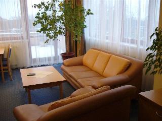 Hotel is situated directly in the heart of the historic centre of Olomouc, in a calm environment of city parks. A walk from the Hotel to the city centre takes some 5 minutes.||The hotel offers a restaurant and sitting-out space in a garden atrium. Thanks to barrierless access to all parts of the hotel, also handicapped clients are allowed to stay in the hotel. Common rooms are equipped with the WiFi. The hotel also includes a fitness centre. The hotel parking lot is continuously monitored by a camera system.||The rooms are equipped with above-standard environment-friendly furniture, TV sets and DVD players, Internet connections, safe-deposit boxes and air-conditioned.