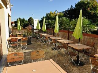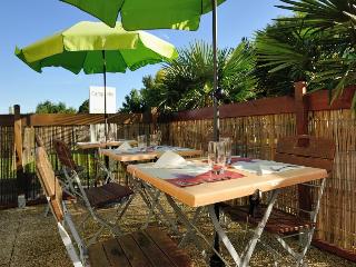 This hotel lies around 15 minutes from the island of Ré, within a short distance of the aquarium and the Musée des Automates et Modèles réduits (museum of automated dolls and reduced models) as well as the towers of Saint Nicolas and La Chaîne, which once defended the old harbour and are today well worth a visit. There is a shopping centre with around 150 shops in the near vicinity and La Rochelle airport is about 10 km away by car.||This family-friendly, 2-storey hotel underwent renovations in 2004 and comprises a total of 48 rooms. Guests have access to the hotel terrace and further amenities within the hotel include a bar, a restaurant, Internet access, TV room conference and parking facilities.||The calm, spacious, quiet rooms offer the ideal environment in which to sleep, relax or work. Each comes with an en suite bathroom with a hairdryer, a direct dial telephone, satellite/ cable TV, an Internet connection, a double or king-sized bed, a courtesy tray with tea, coffee and biscuits, and individually controllable air conditioning.||Guests may select their breakfast from an ample buffet featuring fruits, croissants, cold meats and as many hot drinks as desired. Lunch and the evening meal may also be selected from a buffet or alternatively taken à la carte or chosen from a menu. The seasonal menus are designed to bring clients quality and freshness all year round. There is a daily special in addition to extensive buffets with starters, cheeses and desserts.||From Bordeaux/ Rochefort via the A10 motorway and the RN (national road) Niort/ Nantes, take the Chagnolet exit after the Beaulieu shopping centre. From Niort/ Nantes, take the Chagnolet exit after the Dompierre-sur-Mer exit.
