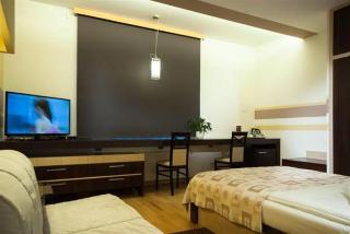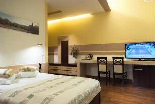 This hotel is located in the heart of Wroclaw, just 500 metres from the main market square. The football stadium is just 15 km away and the airport is around 10 km away.||This air-conditioned hotel offers a 24-hour reception, cloakroom and lift access to the upper floors. Guests can enjoy a drink in the hotel bar and in the morning they can enjoy a tasty breakfast, which can also be served to their room. Guests can also organise barbecues on site. Wireless Internet access is available and guests arriving by car may leave their vehicles in the hotel car park.||The modern rooms at the hotel come with an en suite bathroom with a shower, electronically adjustable beds and DVD players. The rooms also come equipped with a direct dial telephone, satellite TV, Internet access, a radio, individually regulated air conditioning and tea and coffee making facilities as standard.