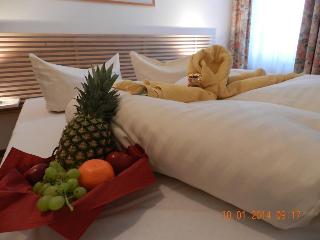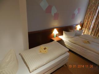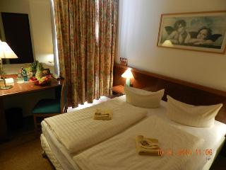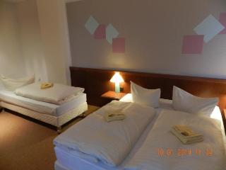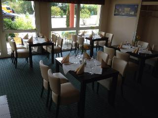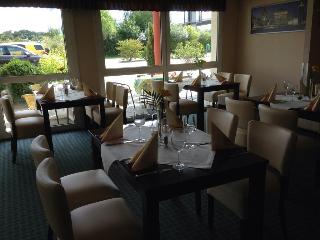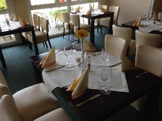 This business and conference hotel is located in the heart of Germany, just off the A9 Munich-to-Berlin motorway. The region around this Dolzig hotel offers a blend of picturesque countryside, historical sites and cultural monuments. Guests will find shops within 1 km of the accommodation, whilst the centre of Leipzig, which is 15 km away, features a train station, a historical city centre, and a number of sights and attractions. The nearest link to the public transport network is a bus stop, which can be reached in 10 minutes on foot. Leipzig/Halle Airport is some 10 km from the establishment.||This airport hotel comprises a total of 70 guest rooms and suites, which are spread across the building's 3 storeys. The hotel features a 24-hour reception and check-out service, lift access, a café, a restaurant and a hotel bar, which is the perfect place for guests to enjoy their evenings. WLAN Internet access and room service are provided and guests arriving by car can leave their vehicles in the nearby car park.||The hotel comprises 43 single and 27 double rooms, and non-smoking rooms and rooms for handicapped guests are both available. All rooms are equipped with an en suite shower/WC, satellite/cable TV with pay TV channels, a radio, a direct dial telephone and WiFi Internet access, heating and a terrace.||This half-board establishment offers a daily buffet breakfast and a range of regional and international dishes, which can be selected from the restaurant's evening à la carte menu.