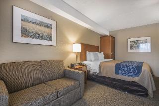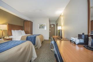 The hotel enjoys a convenient location just off Highway 1 and adjacent to Cottonwood Mall. At the nearby Fraser River guests can explore the scenic trails or go fishing. Fraser Valley University and Chilliwack Heritage Park are also in the vicinity and fans of the fairway will appreciate the proximity of a well-tended golf course. This is a pet-friendly establishment which provides a total of 83 accommodation units, featuring WiFi connection, hot drinks machine for fresh coffee and tea and a 32-inch flat-screen TV with cable channels intended for the entertainment of guests who wish to stay in. All rooms are spacious and bright, with carpeted floors and warm-coloured fabrics.