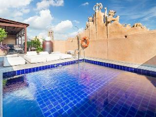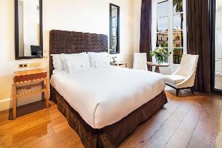 The hotel is conveniently situated just a 5-minute walk from Las Ramblas in Barcelona. Nearby attractions include the Boquería Market, the cathedral, the Palau Güell, Santa María del Mar, the Picasso Museum and the Port of Barcelona. Barcelona El Prat International Airport is just 18 km away.||The charming hotel features modern rooms inside a historic building dating back to 1856 that was renovated in 2011. The hotel consists of 18 luxury rooms. The premises are air-conditioned and guests are welcomed in the lobby, which offers a 24-hour reception and a 24-hour check-out service. There is also a hotel safe, cloakroom and lift access to the upper floors. Guests can enjoy a drink at the café and the hotel has 2 restaurants offering Mediterranean cuisine and tapas. Wireless Internet access is available. Guests can also enjoy the convenience of room and laundry services during their stay.||All of the double rooms and suites are external and have views over the Plaza Real and/or Las Ramblas. The El Terrat room, which is on the roof, has a terrace with a private swimming pool for the people using that room. All rooms are en suite with a shower, bath and a hairdryer. Guests can enjoy a good night's rest on their king-size bed. Amenities include a direct dial telephone, satellite/cable TV, radio, hifi and Internet access. There is also a safe, minibar and an ironing set. Individually regulated air conditioning and individually regulated heating are standard features in all accommodation units. Each room has its own balcony or terrace.||The hotel features a rooftop swimming pool, sun terrace with sun loungers and a spa where guests can pamper themselves with massage treatments. There is also a sauna and a steam room. The nearby beach is sandy.