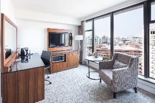 Stay at DoubleTree by Hilton Hotel & Suites Victoria and enjoy a warm welcome and a signature chocolate chip cookie upon arrival. Set on beautiful Vancouver Island, the hotel is just 30 minutes' drive from Victoria International Airport and the BC Ferry port and five minutes' drive from float plane terminals and Washington State Ferry ports. Take a short stroll to historic downtown Victoria and the Inner Harbour or cross the street to the Victoria Conference Center. We offer hybrid Toyota Prius®s available for rent – the perfect way to explore Victoria and discover arts and cultural activities, lush rainforests, unique shops, local wineries, lakes and beaches.Relax in a spacious guest room at this hotel in downtown Victoria, BC, equipped with a Sweet Dreams® by DoubleTree Sleep Experience bed, a refrigerator and microwave, an ergonomic work desk and WiFi. Some of our guest rooms offer magnificent views of the ocean, mountains and downtown Victoria. Elegant suites are also available at this Victoria, BC, hotel, featuring a kitchenette.Watch sports on the HDTV and enjoy live music and entertainment, Thursday through Sunday, in Bartholomew's English-Style Pub. Work out in the contemporary fitness center. Hold an event at this hotel in Victoria, BC, with a variety of flexible meeting spaces and a 24-hour business center.