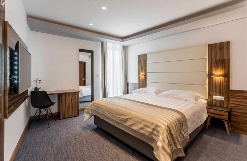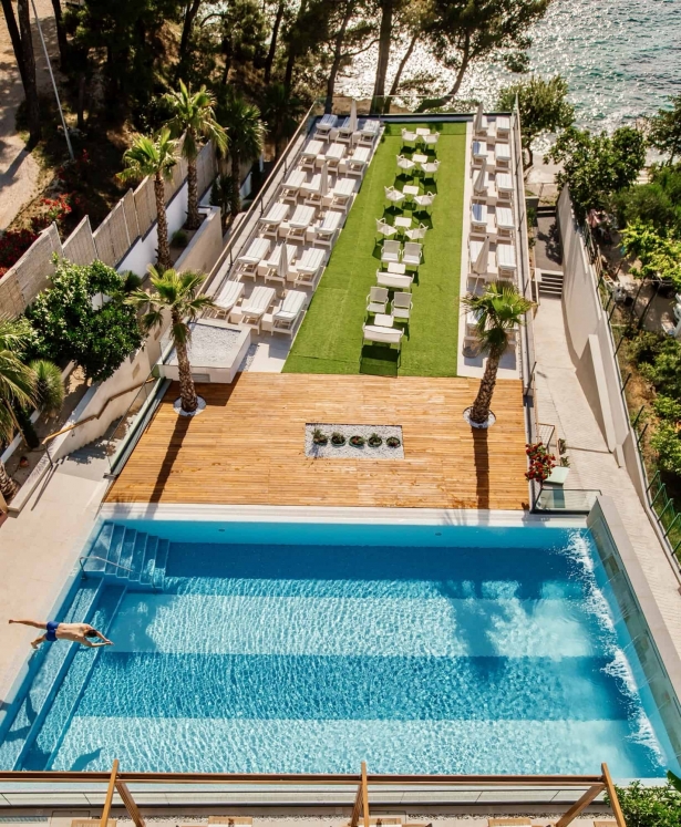Located in the small town of Podstrana just 20 m from the sea, this hotel is just 15 minutes drive from the city of Split that offers a diversity of shopping and entertainment venues (approximately 8 km away). Split airport is some 10 km from the hotel.||This 4-storey hotel comprises a total of 24 accommodation units including 8 apartments. Facilities include a foyer with a 24-hour reception desk, a safe, an air-conditioned à la carte restaurant offering both national and international dishes, room and laundry services. There is a car park on offer to those arriving by car.||The tasteful rooms each come with an en suite bathroom with a hairdryer, a direct dial telephone, Internet access, satellite/ cable TV, a hire safe, and a balcony offering views out over the sea. The apartments are similarly equipped but additionally come with a combined lounge/ bedroom and a modernly equipped kitchenette with a fridge.||Various water sports are on offer from local providers on the beach including banana boating, windsurfing and water skiing.||Guests may select their breakfast from an ample buffet; lunch and the evening meal can be taken à la carte and dinner may alternatively be chosen from a menu.