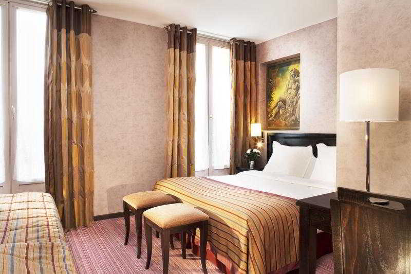 This hotel is situated in the left bank area of Paris, a stone's throw from the Jardin du Luxembourg and Boulevard Saint Michel. Guests will find restaurants, bars, a park and shops in the immediate vicinity. Lots of direct bus routes in the vicinity will take guests to the Eiffel Tower, Montmartre, the Opéra, the Louvre Museum and the Marais district (Beaubourg). It is 200 m to the Sorbonne, 250 m to the Pantheon and Odeon and 500 m to Saint Germain des Près, while Notre Dame is a 5-minute drive away. Orly Airport is 18 km away and it is 30 km to Charles de Gaulle Airport.||This charming city hotel is housed in a typically Parisian freestone building dating back to 1876 and renovated in 2007. It comprises a total of 30 recently renovated rooms with contemporary interiors. The hotel's cream-coloured furniture, inspired by Art Nouveau, has pure lines and contributes to the general atmosphere of serenity. Facilities on offer to guests at this air-conditioned establishment include a lobby area with a 24-hour reception and check-out service, a hotel safe and lift access. There is a breakfast room and guests may take advantage of the WLAN Internet access (charges may apply) and the laundry service (for an additional fee).||The standard rooms have recently been redecorated in very warm, contemporary style and have double windows, making them very bright. They come with a private bathroom with a shower and a hairdryer and offer a queen-size bed. They are equipped with a large desk, a direct dial telephone, satellite TV, high-speed WLAN Internet access, a minibar and tea and coffee making facilities. Furthermore, air conditioning and centrally regulated heating are provided in all accommodation as standard.||Guests may select their continental breakfast from a buffet.