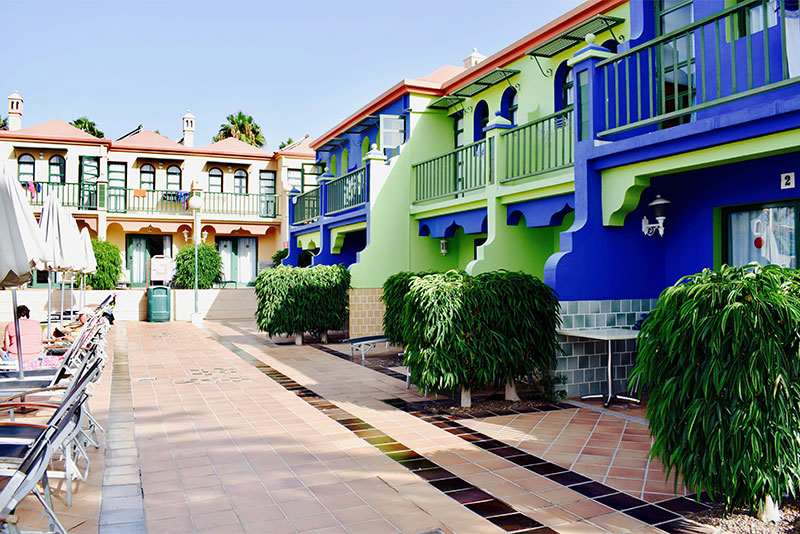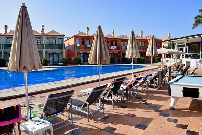 eó Maspalomas Resort eru huggulegar raðhúsalengjur í Maspalomas við golfvöllinn, um 15 mínútna gangur er yfir á Playa del Ingles. Húsin eru á 2 hæðum þar sem stofa og eldhúskrókur eru á neðri hæðinni og svefnherbergi á efri hæðinni. Frítt þráðlaust net er í húsunum, öryggishólf (gegn gjaldi), ísskápur, örbylgjuofn, kaffivél, hraðsuðuketill og hellur. Verönd eða svalir við öll hús. Húsin umkringja fallegan garðinn þar sem eru sundlaugar og góð sólbaðsaðstaða. Góður kostur í Maspalomas.