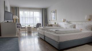 This city and conference hotel is located directly in the centre of Hennef, near the Rhine. Public transport is conveniently located in the immediate vicinity and Bonn is around 20 km away. Plenty of shops are located within a 2 km walk of the hotel.||This beach hotel consists of a total of 78 rooms on 3 floors, of which 32 are singles, 46 are doubles and there is also 1 apartment. The hotel's facilities include a pleasant lobby with a 24-hour reception, a safe, a currency exchange desk, lifts, a TV room and car park. Dining options include a café and an air-conditioned à la carte restaurant. In addition, Internet access, room service and laundry services are all available.||The rooms include an en suite bathroom with a hairdryer, a direct dial telephone, satellite/ cable TV, Internet access and a radio. In addition, all are fitted with a minibar, central heating and a king-sized bed as standard.
