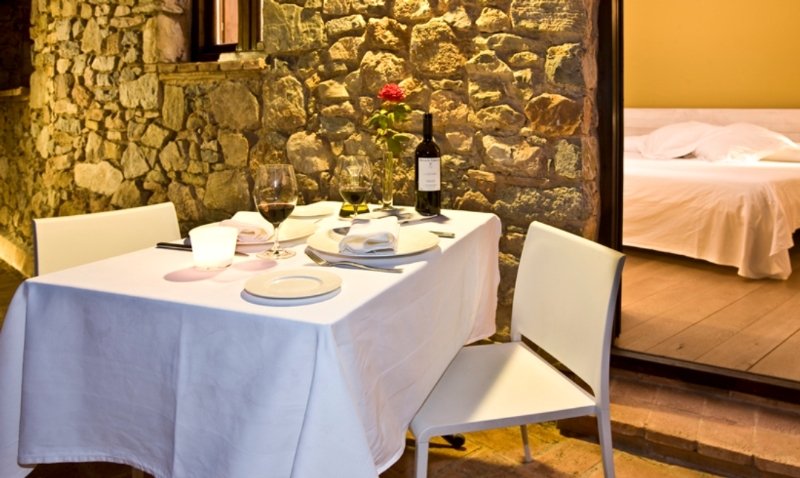 The hotel is located 2 km outside Pratdip on the T-311 road which joins Pratdip with The Santa Marina Hermitage. The nearest beaches are 12 km away (Hospitalet de l'Infant), where guests will also find restaurants and bars. It is roughly 25 km to nightspots in Cambrils and around 30 km to Reus, with its shops, park and tourist centre. The region of Priorat is 40 km away, as is Delta Ebro. It is approximately 35 km to Reus Airport, 130 km to Barcelona Airport and 220 km to Girona Airport.||This small, charming, air-conditioned gourmet hotel is ideal for those looking to relax in intimate surroundings and relish in good food. Hidden amongst the olive groves, in rural Catalonian countryside, relaxation and getting away from it all are guaranteed thanks to this little secret paradise that breathes only silence and tranquillity. Guests will enjoy emotional well-being, where time passes but is never wasted. It was renovated in 2010 and comprises a total of 7 rooms, including 1 suite and 1 junior suite. Facilities on offer to guests include a 24-hour reception and check-out service. Guests can dine at the restaurant and will appreciate the wireless Internet access. They can also take advantage of the room service. A car park is available for those arriving by car and it is also possible to hire bicycles on the premises.||The rooms have been created as a shrine to absolute rest. High quality materials have been used such as oak or metal, pale colours cover the walls and there is the serenity of white towels, soft white sheets and the comfort of the mattresses. Everything has been carefully considered to guarantee guests' rest. All come with an en suite bathroom with a shower and a hairdryer and offer a double bed. They are equipped with a direct dial telephone, a TV, a radio and complimentary wireless Internet access. Furthermore, a balcony or terrace and individually regulated air conditioning and heating are provided in all accommodation as standard.