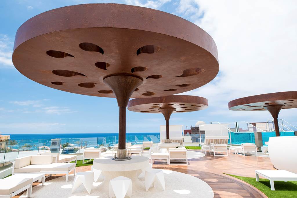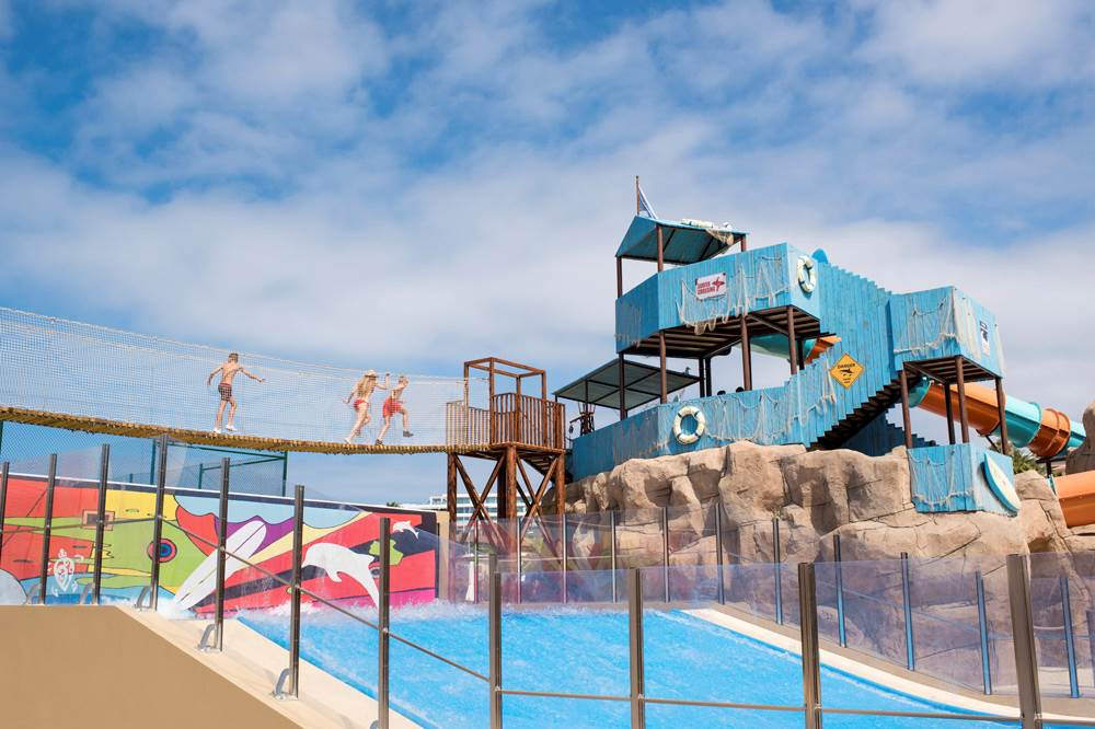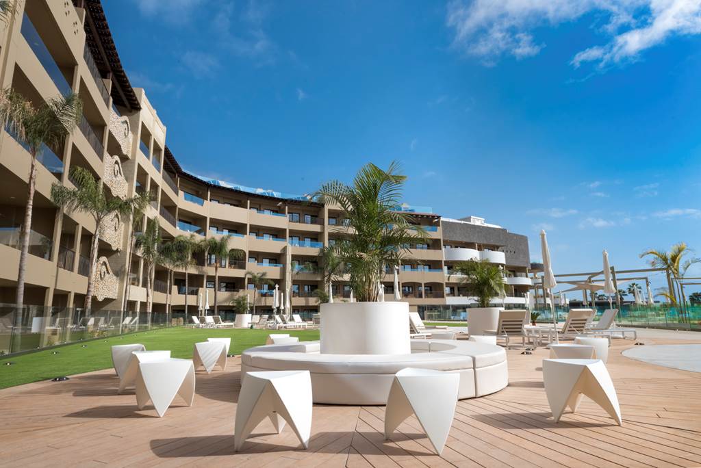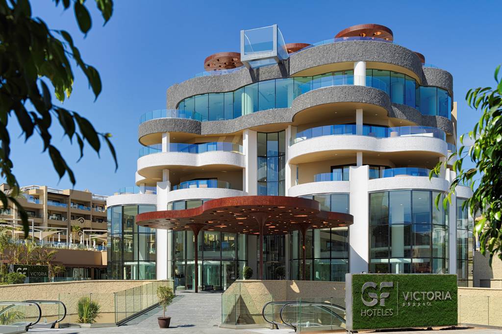 Inaugurated in December 2017, GF VICTORIA*****GL was designed with the health and wellness of families at its heart. Enter the spacious and bright lobby and start your journey of wonderful experiences and new sensations.|From our beautiful and diverse pool zones, choose your preferred place to relax; perhaps the exclusive adult pool, the family area or, for complete freedom, the naturist pool on the private roof terrace. Meanwhile, children can make new friends and let off steam in our aquatic park, which includes the exciting surf pool (extra charge of 10 €) and a wealth of activities for each age-group. |In our chill-out Sky Bar Zambra, sip your favourite drink whilst watching the spectacular views over the ocean as the sun slips slowly below the horizon. Here, you can take a swim in our stunning glass pool, with transparent walls and bottom, overhanging the façade of the hotel.