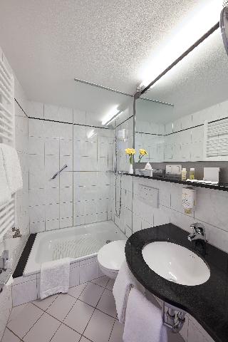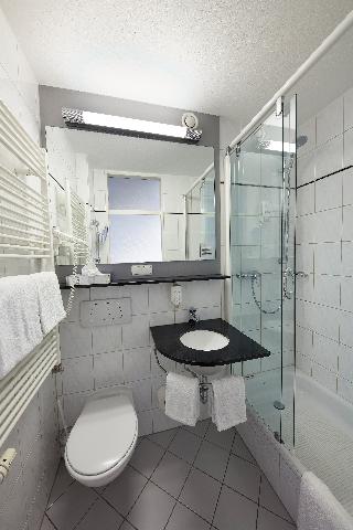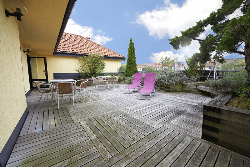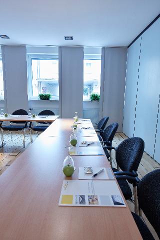 This family-friendly hotel is located in the Neuhausen district of Munich, a popular part of the city, which is known for its good restaurants and shopping opportunities. The city centre can be reached quickly by metro with the nearest stop Rotkreuzplatz just 50 m away. Franz Josef Strauss Airport is roughly 30 kms from the hotel. The hotel offers 76 modern and attractively furnished guest rooms. The small reception area exudes a stylish yet warm ambience and the lobby is notable for its design-oriented furnishing: black leather arm chairs in front of illuminations that pulsate in different colours. The breakfast room is equipped with the same modern and appealing furniture. Located to the back of the building guests will find a quiet area with 3 roof-terraces. Deck chairs, chairs and tables invite guests to spend a quiet minute or two relaxing here in the sunshine.