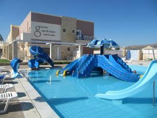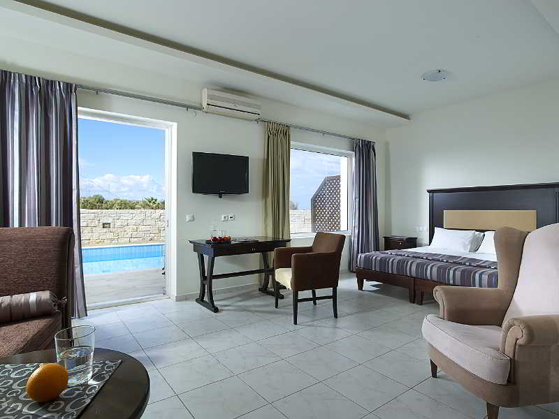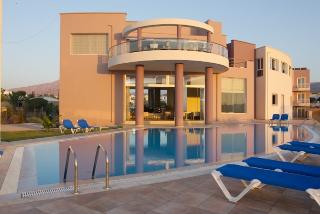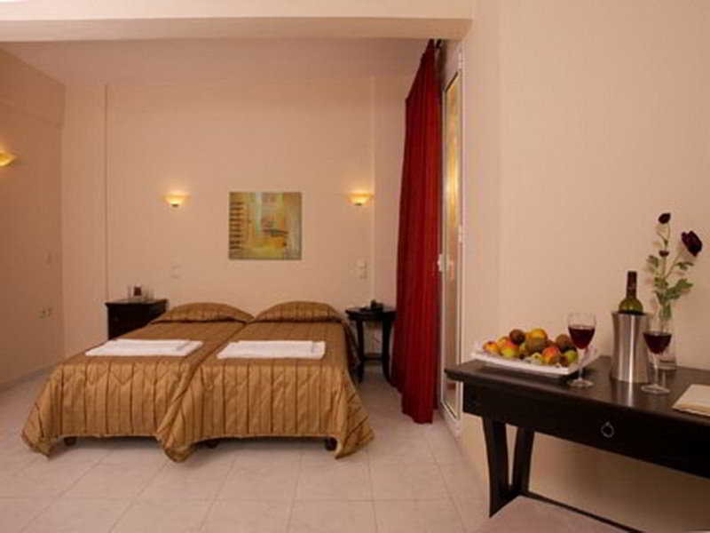This hotel is situated in the village of Gouves, right on the sandy and well organised beach offering its guests tranquillity and relaxation. The hotel is located 16 km east of Heraklion International Airport.||In addition to a lobby area with 24-hour reception and check-out services, a hotel safe, currency exchange desk, lift access and lobby lounges, this air-conditioned beach hotel offers its guests such facilities as wireless Internet access, a conference room, TV and Internet corner, 2 restaurants and a lounge café. Further features include a games room, laundry service, bike hire service and a car park. Younger guests will be able to let off some steam at the children's playground.||All rooms are modern and comfortable and have a balcony or terrace. In addition to a private bathroom with a bath or shower and a hairdryer, in-room amenities include a direct dial telephone, satellite TV, radio and Internet access, as well as a fridge and a double bed. Furthermore, rooms also feature air conditioning and heating units and a safety deposit box.||There is a swimming pool in the hotel grounds with a poolside snack bar that is surrounded by sun beds and umbrellas. Furthermore, guests can play tennis and table tennis. Fans of the fairway can head to the nearest golf course, which is approximately 7 km from the establishment.||A continental buffet breakfast is served each morning. Lunch can be taken à la carte or selected from various menu options. Dinner can be enjoyed as a buffet.