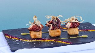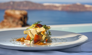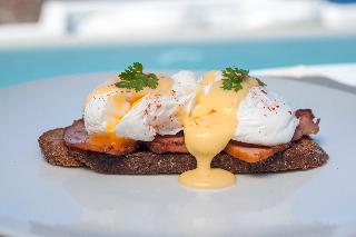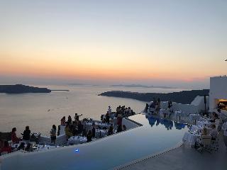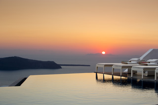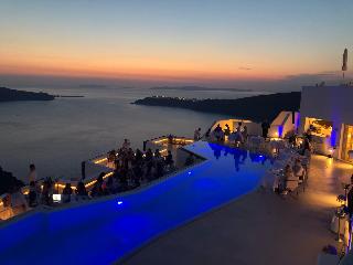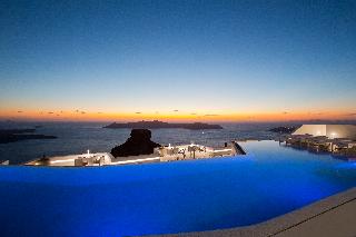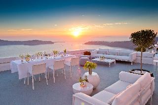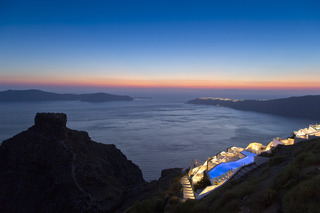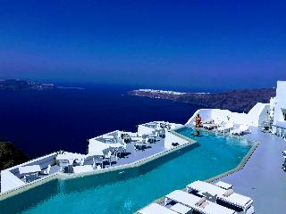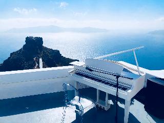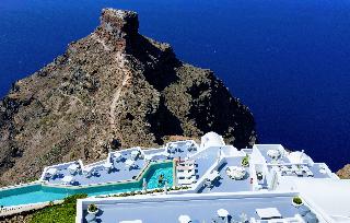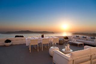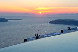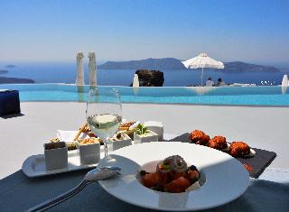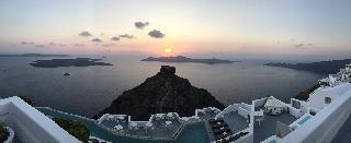From the hotel's setting on the exclusive Imerovigli hillside in northwest Santorini, guests can enjoy the famed Aegean sunsets over the Cyclades. The panoramas from the hotel's terraces are breath-taking. The establishment offers modern elegant rooms on various levels of the caldera cliff which will stun visitors with their marvellous views. Each guestroom comes equipped with a king size bed and opens to a private furnished terrace. Most accommodation units have their own plunge pools overlooking the Caldera, Skaros and the spectacular Aegean Sea. Champagne breakfast is served on the terrace or in the restaurant. An a la carte menu is available for lunch and dinner as well.