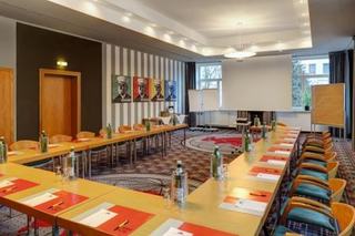 This hotel is located in the southeast of Berlin near to Schönefeld Airport (5.5 km) and the A100 and A113 motorways. Guests will find restaurants in the immediate vicinity of the hotel and it is just 20 m from the forest of Grünau. A stop on Berlin's urban rail network (S-Bahn) is just 1.2 km away and Langer See lake is only 1.8 km. It is 3.5 km from Wista Park, the famous site for research and development. Berlin city centre is 30 km away, just 25 minutes by public transport, and Potsdam city centre is 35 km from the hotel.||This conference and seminar hotel offers comfortable accommodation which is just that little bit different. It comprises a total of 52 standard rooms, 2 business rooms, 11 comfort rooms, 3 special tower rooms and 4 apartments and is ideal for business travellers and holidaymakers alike. Facilities on offer to guests at this air-conditioned establishment include a lobby area with a 24-hour reception and check-out service, a hotel safe, a lift, a café, a newspaper stand, a restaurant and WLAN/Internet access. It also provides quiet and comfortable air-conditioned, conference facilities with plenty of daylight and equipped with state of the art conferencing technology and window blinds. Guests may also take advantage of the room and laundry services and there is parking (charges apply) for those arriving by car. Guests wishing to explore the surrounding area by bicycle will find a cycle hire station at the hotel (charges apply).||All the rooms come with a private bathroom with a shower and 2 of the apartments offer a bathtub. They are all equipped with a double bed, a hairdryer, a radio, a TV and a telephone with ISDN connection and Internet access. All except the standard rooms have a minibar and some rooms also offer a wardrobe and a telefax connection.