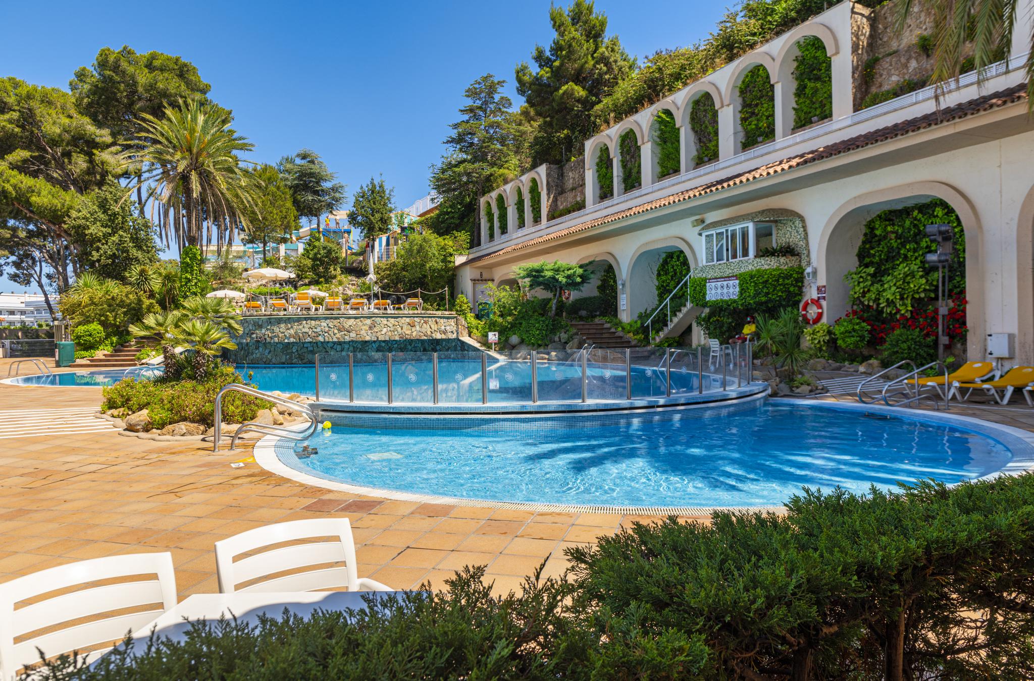 This family friendly beach hotel is located in the main road of Lloret de Mar. In the near vicinity guests will be able to find the famous sandy beach of the city. Lloret's promenade is and active and lively place where guests will find a variety of leisure and restaurants options with local food. Different tourist sites such as Jardins de Santa Clotilde, approximately 2 km away and Museo del Mar, around 1 km away, can be easily reached from the hotel. Girona Airport is approximately 30 km from the hotel.|Guitart Gold Central Park Aqua Resort Hotel takes pleasure in announcing the forthcoming inauguration this summer 2017 of the new aquatic park, providing 2.000 sq.m. of fun and leisure for families.The new leisure area will have a capacity for 430 persons, complementing all the Resorts diverse facilities and services and will consist of:|• Splash Park: Small childrens area, with interactive elements in a pool with a sheet /layer of water of only 30cm depth.|• Waterslides: 2 water slides over 7 metres high. An enclosed slide in a kamakaze mode with a 40 metre run, the second slide with a semi- open looping slide with a 70 metre run|• Swimming- pool: A beach style access to the swimming-pool to enjoy and cool down in from the Summer heat.|The area will have thematic zones created by the famous illustrator Pilarín Bayés.||