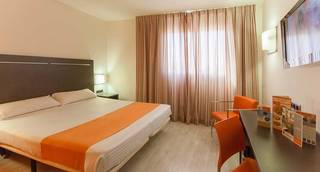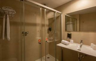 Newly built hotel. Situated at the city entrance, the A2 Avila offers 65 rooms. This central location next to the centre of Avila, allows the clients to easily reach the hotel, which offers covered and uncovered parking. From some of our rooms you could contemplate some beautiful city walls. Our rooms have been conceived in order to offer the necessary comforts. For this reason, we have decided to make them large and with parquet, 32' TV, a big shower equipped with security box, Wi-Fi connection etc. The hotel also has a full buffet breakfast, restaurant at noon and different menus in the evening, as well as 24 hours cafeteria, and allows pets, extra charged service.