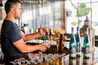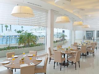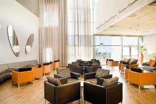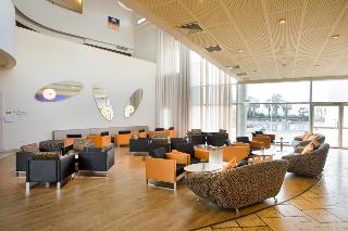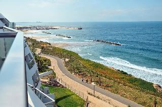 The hotel is surrounded by enormous lush lawns and located on a lofty cliff on the edge of the Ashkelon promenade, metres away from the Mediterranean sandy beach and walking distance from the touristic centres scattered around the beach promenade. Ashkelon Central Bus station is approximately 10 minutes away by car. Various shopping venues can be found around 1 km or 10 minutes' walk from the hotel.||Renovated in 2010, the 215-room resort hotel features unique architectural design and guarantees spectacular views from every room. The inner areas of the hotel complement the marine-like theme of the hotel with inner round balconies, round glass and wood designs and decorations. The furniture all around is modern with cheerful colours. In addition to a lobby area with 24-hour reception and check-out services, hotel safe, currency exchange desk, cloakroom and lift access to the upper floors, facilities available to guests at this air-conditioned, family-friendly beach hotel include a café, hairdressing salon, bar, theatre, games room and a restaurant. Conference facilities and WLAN Internet access are also provided, and guests can take advantage of room and laundry services and a bike hire service. Those arriving by car may leave their vehicles in the hotel car park. Younger guests will be entertained at the kids' club and can let off some steam at the children's playground.