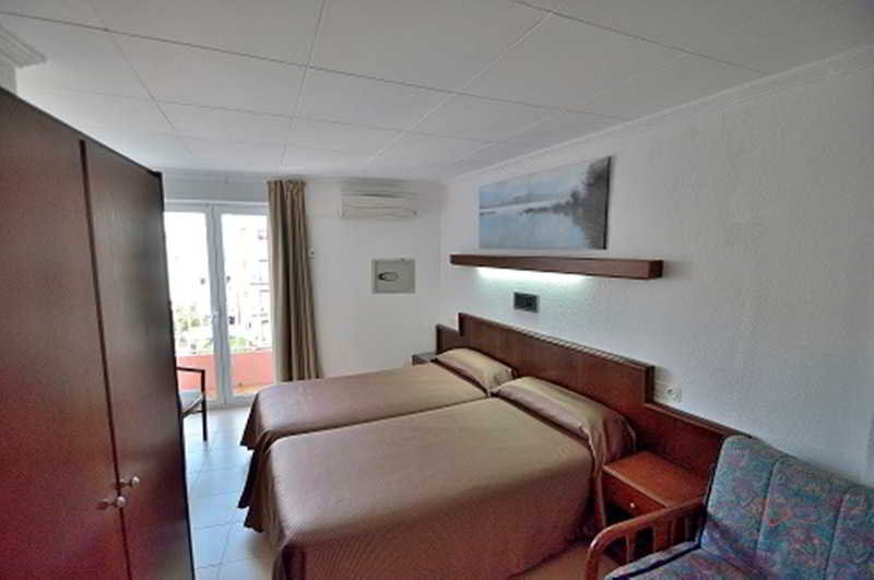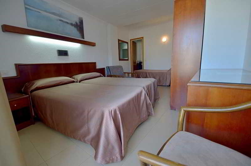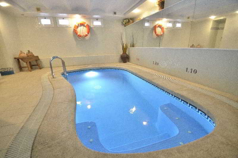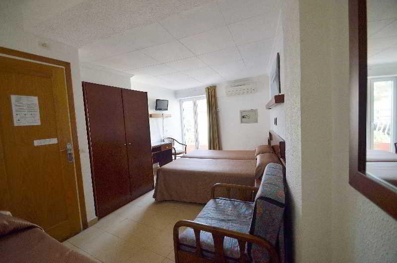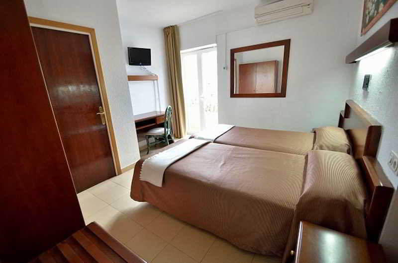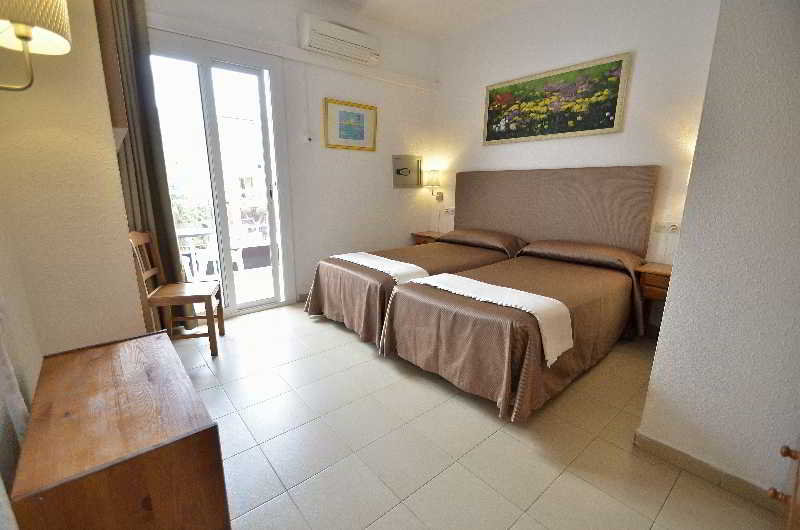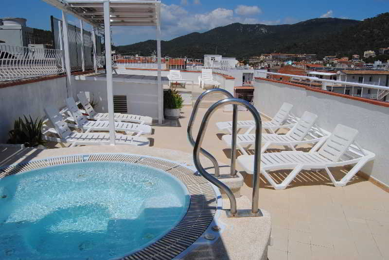 This hotel is located near the entrance to Tossa de Mar and its commercial area. It is located five minutes from the beach. Links to the public transport network are within a stone's throw. Girona-Costa Brava Airport is situated at a distance of approximately 25 km.||The small hotel with a familiar atmosphere was built in 1965 and has undergone several renovations, the latest of which occurred in 2009. It consists of 24 rooms on six floors, an attic and a large sunny terrace. It also has a cosy bar decorated with oil paintings created by the owner of the establishment. The air-conditioned hotel consists of a lobby, hotel safe, cloakroom, lift access, a TV lounge, café and restaurant. WLAN Internet access is provided for a fee. Those arriving by car may leave their vehicle in the garage.||All rooms are equipped with a private bathroom with bath, individually regulated heating and air conditioning and a TV. Moreover, each one has a double bed, background music, a radio, a safe and a balcony or terrace.||Guests may take a refreshing dip in the indoor heated swimming pool or relax on the sun loungers on the sun terrace. They can also make use of the hot tub. Sun loungers and parasols can be found on the nearby beach.||A breakfast buffet is served each morning.