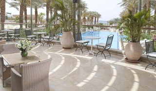 This stunning oriental-style hotel is set right on the beach in Eilat, surrounded by lush palm trees and overlooking the turquoise waters of the Red Sea. The marina is only a short walk away, and the city centre and airport can both be reached in just five minutes by car. The hotel's modern guest rooms and suites boast a plush, stylish décor, king-sized beds and coffee and tea service. Guests might indulge in 24-hour room service to enjoy a relaxing night in, or choose from the two buffet-style restaurants, a dairy restaurant, and a poolside bar serving shawarma, falafel and other fun comfort foods. The full-service spa is complete with Jacuzzi, wet and dry saunas, massages and a range of beauty treatments, offering a relaxing afternoon of pampering. Guests can also make use of the state-of-the-art gym and outdoor pool, and children will delight in the children's pool, all for a delightful holiday by the Red Sea.||Saturdays, and Jewish holidays, check-in is available from 21:00