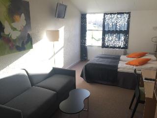 This hotel is centrally located in Hillerød, close to the access roads from Copenhagen. There are many historical sights to see in the local area, as well as Danish culture, shopping opportunities and leisure activities. Guests will find the nearest resta||This city property is a low-rise hotel with a total of 113 comfortable rooms, most of them with terraces. A green area with gardens surrounds the complex, and the hotel offers an overall relaxing atmosphere. Facilities on offer to guests include a lobby a||All rooms can be adapted to accommodate up to 4 people and come with a private bathroom with a shower, a WC and a hairdryer. They are equipped with satellite TV with pay movies, a radio, a telephone, free Internet access and a minibar. Furthermore, a trou||Golf enthusiasts can play a round at the nearby Hillerød Golf Club, just a 10-minute drive from the hotel.||The hotel offers guests a quality restaurant where the cuisine is based on local traditions spiced with a dash of international inspiration. They can select their breakfast from a buffet and the midday and evening meals may be enjoyed à la carte.||From Copenhagen guests should take motorway 16 north to Hillerød. Take the exit for Hillerød S and go along Peder Oxe's Allé, driving across 3 roundabouts. At the 4th roundabout take the second exit and follow signs for Milnersvej for about 400 m. From El