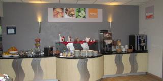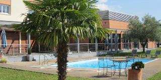 This city business hotel is located halfway between the cities of Grenoble and Chambery, in the heart of the Alps. Only 20 minutes from the powdery slopes of the ski resort les 7 Laux and among the world-famous nano-technology companies (STMicroelectronics, Freescale, IBM, NXP, Soitec, Memscap), it is the ideal place to stay both for business and for leisure. Guests may like to visit Chartreuse regional park, which is around 20 km from the hotel, the d'Allevard thermal baths around 25 km from the hotel or the casino d'Uriage around 21 km from the hotel. Furthermore, the Museum of Grenoble and the télépherique de la Bastille (cable cars) are located roughly 20 km away. It is located approximately 25 km from the city centre, approximately 18 km from the train station and approximately 6 km from the Grenoble-Isère Airport.||With its new congress centre with facilities for meetings and cocktail parties, its independent lounge restaurant, Les Cloyeres and terrace for the summer days, the hotel is conveniently situated. High-speed WLAN Internet access is free of charge. The hotel and its quiet rooms offer beautiful views over the Chartreuse and Belledonne mountain ranges. The 3-storey hotel offers 80 rooms, a lobby with hotel safe and café. Also featured are room service, a laundry service and car park.||The air-conditioned guestrooms are cosy, comfortable and equipped with modern features that ensure a pleasant stay. These en suite rooms come with a direct dial telephone, satellite/cable TV, Internet access and tea and coffee making facilities.||There is an outdoor heated swimming pool at the hotel.||Guests can start their day with the breakfast buffet offered in the beautiful Great Room and can also enjoy their favourite drink at the Alix bar.||From Grenoble: Take motorway A 41 toward Chambery. Exit at number 24 C Bernin and drive straight ahead. At the roundabout, take a left and then, take the first street on the right. It is a bit further on the left.