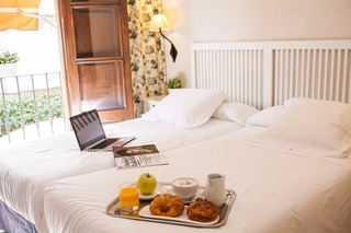 The hotel is situated in the heart of the city of Alcalá de Henares, just 50 m from the Cervantes Birthplace Museum and the Archbishop's Palace. It is only a few minutes' walk away from the train and metro stations and shops. The Regional Archaeological Museum and the Cathedral-Magistral are only around 150 m away. It is just 26 km to Madrid-Barajas Airport.||The air-conditioned city hotel has 13 rooms in total and is nestled in a 16th century building. The hotel has a bar/cafe, terrace and a lounge which is decorated with wood and features a flat-screen TV. Guests are welcomed in the lobby, which offers 24-hour reception and a 24-hour check-out service, as well as a hotel safe. Here guests can also find currency exchange facilities, a cloakroom and lift access to the upper floors. Guests can dine in the hotel restaurant, and room and laundry services are offered. Wireless Internet access is available throughout the building.||The rooms are appointed to a high-quality with top standards of comfort. The rooms are spacious and bright, with views of the 16th century monastery, and offer the perfect conditions for relaxation. All rooms feature a complete bathroom with shower and bath, as well as an LCD TV with cable channels, and wireless Internet access. The rooms also come equipped with a hairdryer, direct dial telephone and radio as standard. Additional features include air conditioning, heating and a balcony or terrace.||Guests can enjoy dining in the hotel restaurant, which is listed in the Michelin Red Guide. The hotel serves a continental breakfast. Lunch is offered from a set menu and dinner is served à la carte.