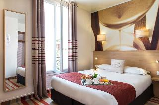 The Ariane Montparnasse Hotel*** is located in the heart of the Montparnasse district, in a quiet pedestrian street coming out on a charming tree-filled square, a 5-minute walk from Pernety and Alesia metro stations and a 10-minute walk from the Montparnasse train station. Perfect for your stay in Paris, this neighbourhood very popular with tourists and Parisians has a wide variety of restaurants, theatres and other points of interest.|Guests will appreciate the elegant hourglass-themed decoration, the comfort of its 30 rooms with high-speed Wi-FI, the amenitues as well as the attentive service delivered by the staff available 24 hours a day.|For a vitamin-rich breakfast, a buffet breakfast is served each morning with freshly squeezed orange juice, homemade cakes, traditional French breads and pastries. For your visits, you will reach the Jardin du Luxembourg, the Catacombes, the Latin Quarter and the Bon Marché store in a few minutes. Paris Expo Porte de Versailles is a 15-minute drive away.