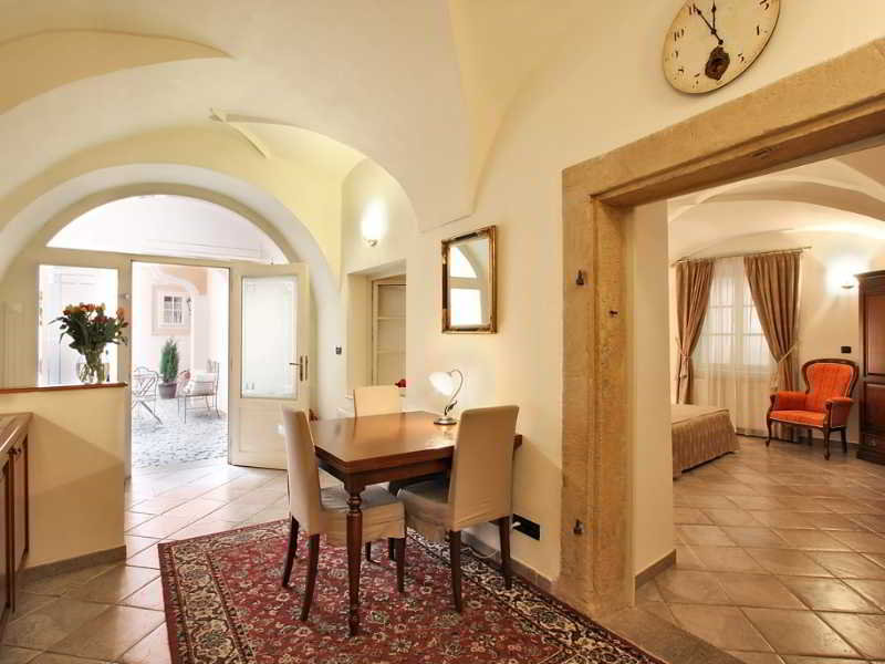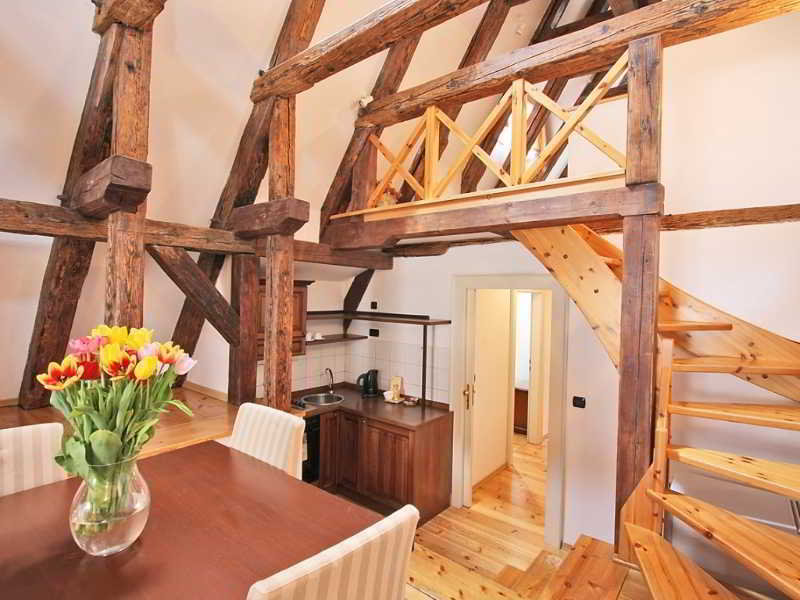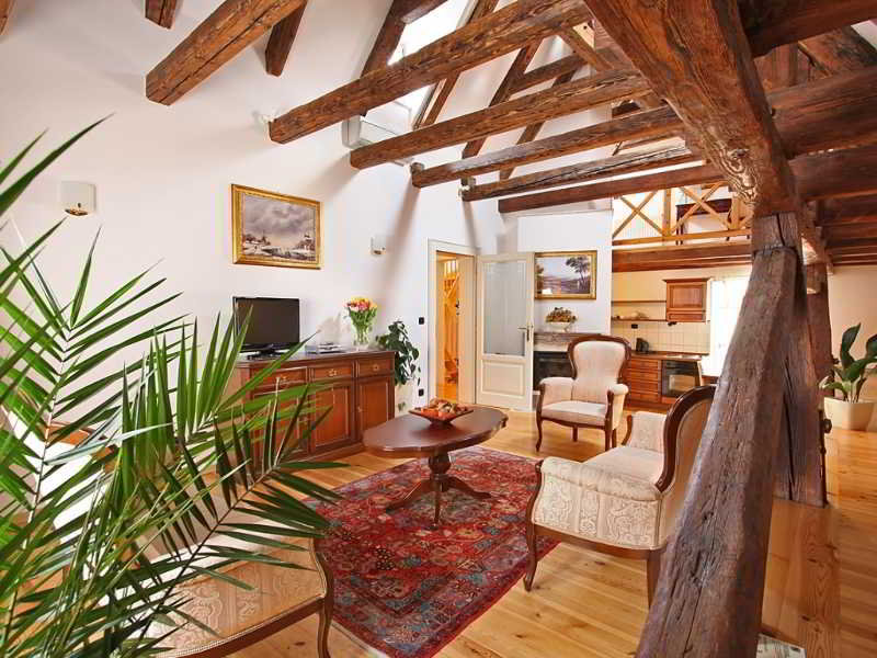 Residence Retezova is your 4 star accommodation in Prague if you look for more than just an ordinary hotel. We offer 9 fully serviced apartments, from Studios to Attic Family Apartments, all with no minimum stay. At Residence Retezova you benefit from the service of a hotel while at the same time are able to enjoy all the conveniences of home! Our charming, beautifully designed suites, some of them with wooden painted beams, Gothic vaults or fire place, will make you feel cosy and comfortable.