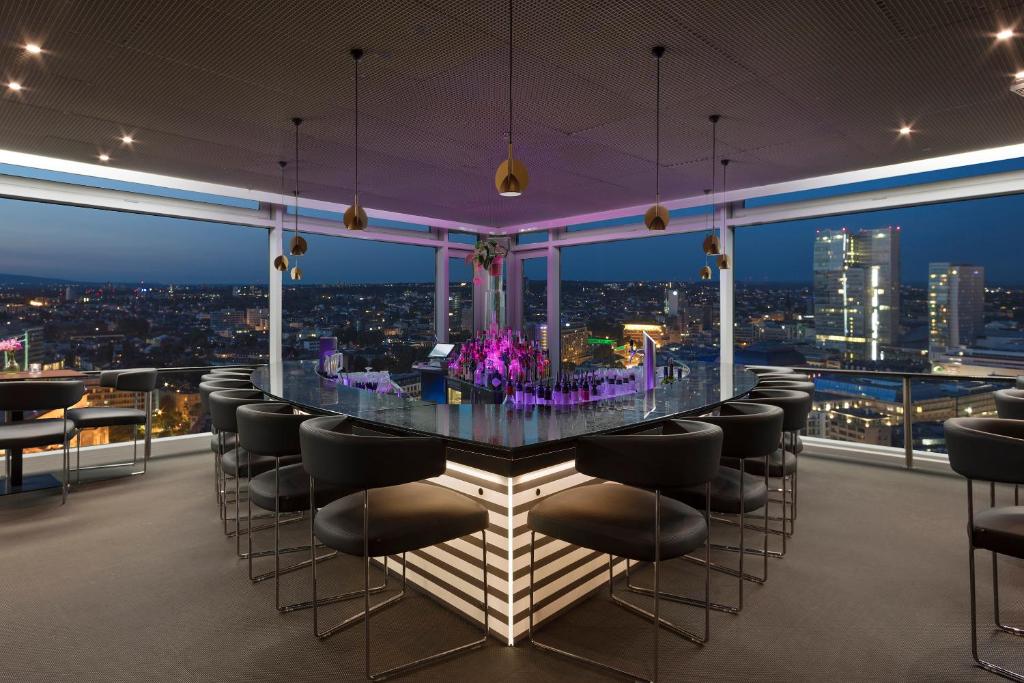 This award-winning city hotel is housed in an awe-inspiring skyscraper opposite the opera house, offering fantastic views of the Frankfurt skyline. Guests will find a range of dining options and shops nearby, and links to the public transport network can be found within a two-minute walk, making this all-suites hotel ideal for both business and leisure travel.|The ultra-modern suites feature unique designs and double-glazed, full-length windows that can be opened for fresh air, ensuring a peaceful and comfortable stay. Guests can unwind in the fitness centre and sauna after a long day of work or play, and relax with a drink in the chic and exclusive lounge and bar accompanied by live music and panoramic city views. Business travellers can make use of the two versatile conference rooms for meetings, seminars, and banquets, and the hotel helpfully offers room service and underground parking for the convenience of all guests.