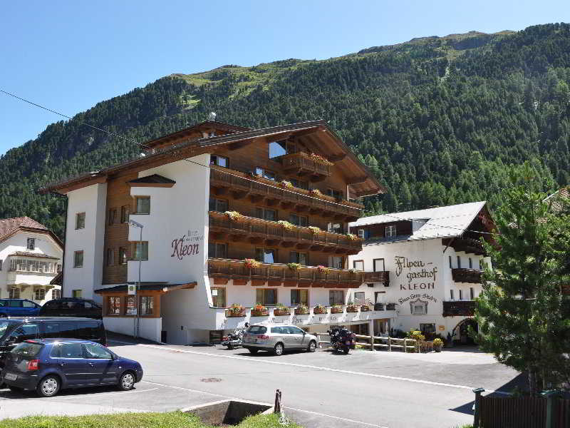 The Kleon Hotel is situated in the middle of a garden with sun terrace and playground In Vent, 200 m from the Wildspitze cable car, the Hotel Kleon offers you a sauna and a restaurant serving Austrian cuisine. WLAN is available free of charge in the public areas. In good snow conditions you can reach the accommodation on skis.|All accommodations are equipped with satellite TV and private bathroom. All family rooms have a balcony or terrace.|A snack or packed lunch for lunch, tea and cake in the afternoon and a 4-course menu in the evening. Non-alcoholic drinks, beer and wine are included from 10:00 to 22:00.|The all-inclusive offer includes a rich breakfast buffet|After 200 m you will reach a grocery store.|Next to the Hotel Kleon there is a ski school and a ski bus stop and after 200 m you reach a ski rental.