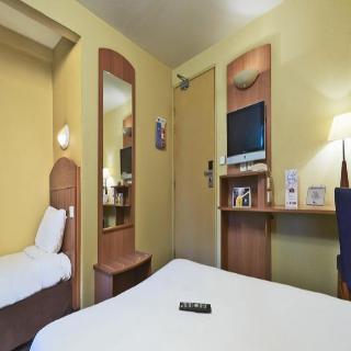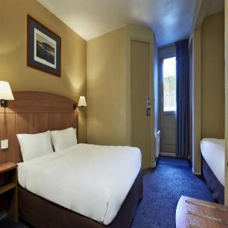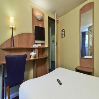 The hotel is located just 5 min from the Stade de France and 20 min from the business district of La Défense and the Villepinte and Bourget exhibition centres, allowing guests to fulfil their professional needs whilst enjoying some peace and quiet in a green setting on the outskirts of Paris. The hotel is situated in the city of Villeneuve la Garenne, near Paris. The centre of Villeneuve la Garenne is just 1 km away. The nearest train station is 1.5 km away, and the closest bus stop 500 m, from the hotel. The international airport at Roissy is 23 km away, 25 min' drive, and Orly is approximately 33 km from the hotel, 39 min' drive.||Renovated, this hotel comprises a total of 59 rooms. Facilities on offer include an entrance hall, a bar, a restaurant, public Internet access, a WLAN access point and parking for those arriving by car.||Each room comes with an en suite bathroom with bathtub, toilet and hairdryer. In addition, they are equipped with an electric kettle for tea or coffee, a cable/ satellite TV and free WIFI access.||Breakfast is served in the form of a buffet. Lunch and dinner can be taken as a set menu or à la carte. Starters and desserts are served in the form of a buffet.||From the town centre (Villeneuve la Garenne): Follow directions to the swimming pool or Parc des Chantereines. From Paris: take the subway (line 13 to Saint-Denis Université) and get out at Mairie de Saint-Ouen. Then take bus 137 towards zone industrielle du Nord and get out at St Exupéry.