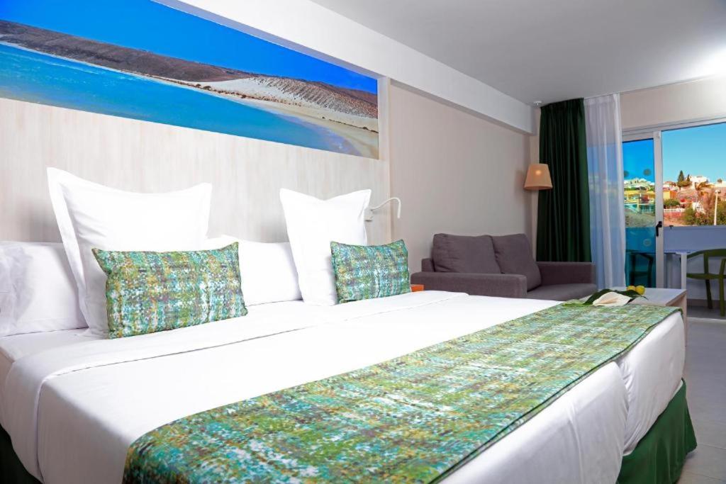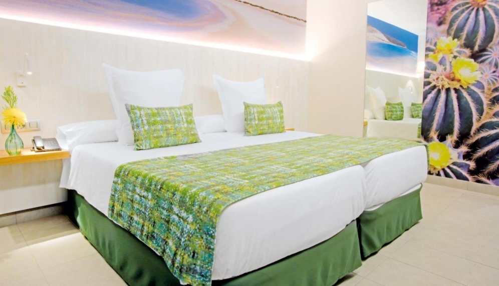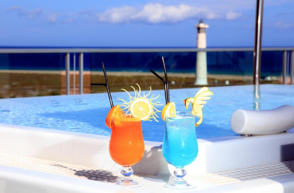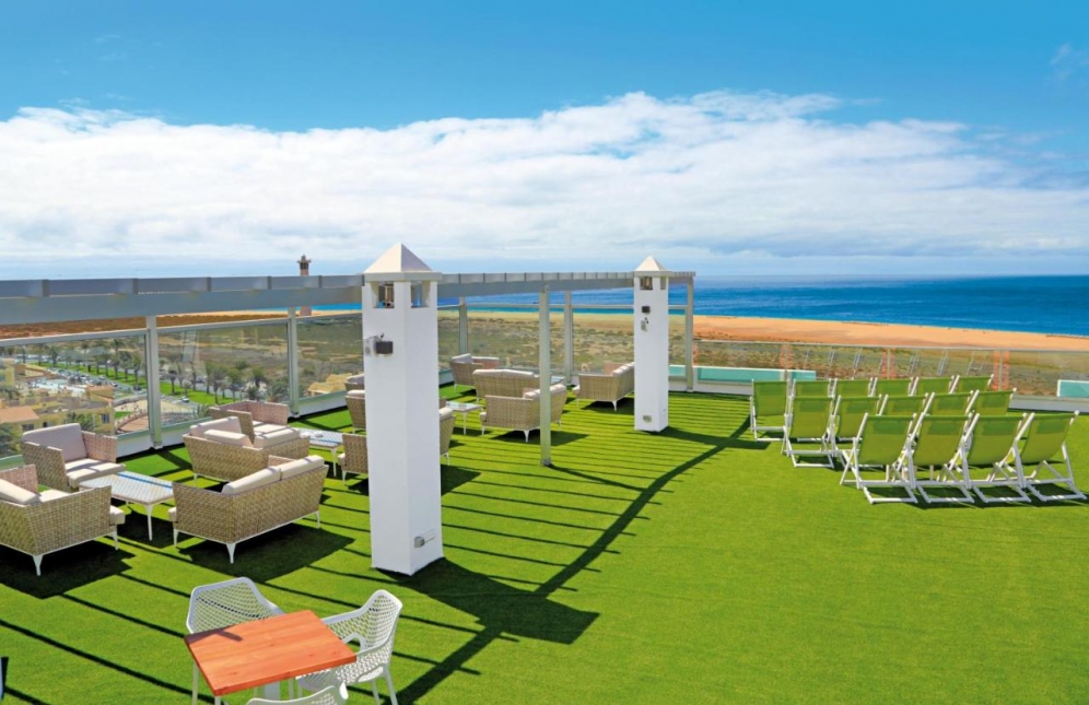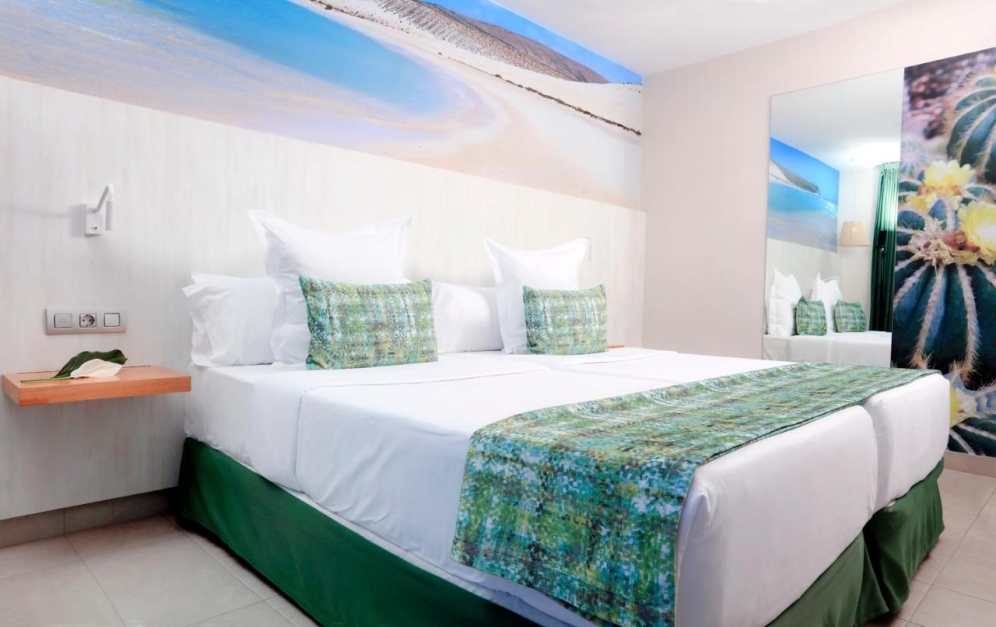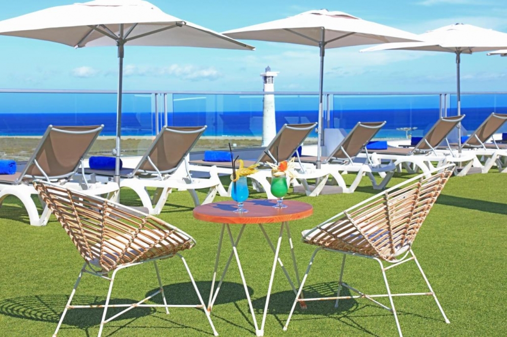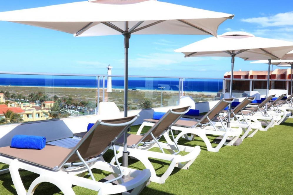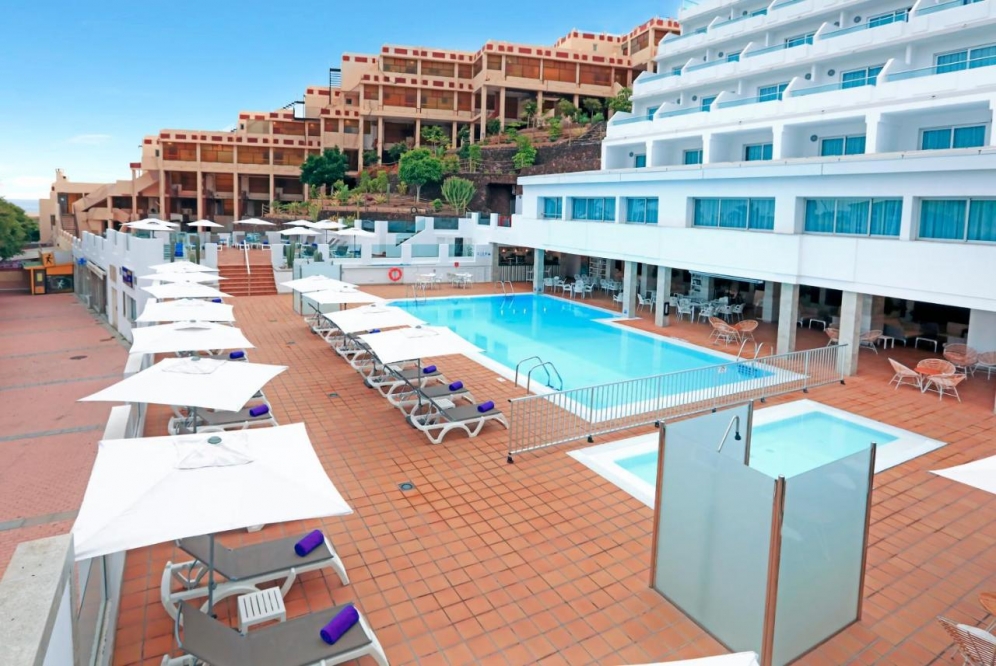 The hotel is located in Jandia, the south of Fuerteventura. Centrally located, at 250 m to the long, fine sand beach. The hotel offers a lobby with reception, lifts, buffet restaurant with show cooking, evening bar, a roof terrace with a cocktail bar, Wi-Fi and Wellness area. In the outdoor area is the freshwater swimming pool with sun terrace and pool bar. Sunbeds and umbrellas are included at the pool. For the younger guests there is a mini club (5-11 years) and a separate children's pool. Wellness center and massages (both with extra charge). Fitness room free. Sunbathing area with sun loungers and parasols. Day and evenning entertaiment with shows, live music and dancing.|