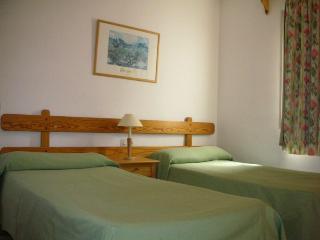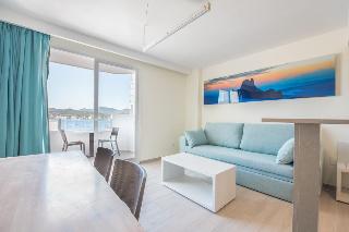 This complex enjoys a particularly peaceful but central location in San Antonio, a district providing all kinds of tourist amenities that is particularly famous for its lively nightlife scene. The complex affords excellent proximity to idyllic bays that may be reached from the land as well as by boat from the sea. Links to the public transport network and the nearest beach are both to be found just 200 m away.||This apartment complex offers 33 lodgings spread over 3 floors and features a foyer area with a reception desk.||The spacious apartments include a bedroom, while the studios include 2 beds and a sofa bed. Further facilities include an en suite bathroom, a kitchenette, a hire safe and a balcony or terrace.||The nearest golf course is 20 km away.