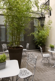 Very close to the train stations Gare du Nord and Gare de l'Est, the elegant Mademoiselle hotel offers a relaxing place in the heart of Paris, thanks to its courtyard, its rooms and its wellness area. This recently renovated boutique hotel in the 10th arrondissement has a great location, also near from the Canal Saint-Martin, the Opera, the Sacre Coeur and the famous Galeries Lafayette. All rooms have high quality bedding, bathrobes and slippers, iPods dock station, coffee maker, bottled water, free wifi, air conditioning and a flat-screen TV with a wide selection of French and foreign channels. In the wellness area you will find a steam bath, a sauna, an ice fountain, a relaxation area, a gym (Tehnogym equipment) and a massage room (mattresses). Free access to the SPA from 10 AM to 1 PM. After 1 PM, SPA access will be 20 EUR per hour per person. You can also relax in the lounge Mademoiselle, with its giant TV, where you will find a great selection of hot drinks at any time. Its beautiful courtyard welcomes you in the morning to have breakfast.
