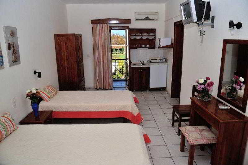 This comfortable apartment complex boasts a strategic position right in the town centre of Skiathos on the Greek island of the same name. Guests will appreciate its convenient position just a few steps from the beautiful beach and within easy reach from the town's harbour and international airport, offering its visitors the possibility to explore other nearby destinations. All the apartments are simply but completely furnished to ensure a pleasant and relaxing stay. The accommodation units come fully equipped with modern amenities and useful features such as individually controlled air-conditioning system and a completely fitted kitchenette for those more independent guests who wish to prepare their own dishes while on holidays. Visitors may bask in the sun on the grass at the pool terrace and enjoy a refreshing dip at the fantastic outdoor swimming pool.