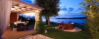 The villas are located in the environmental oasis that is the apartment village Sol Stella Maris, 2 km from the Umag town centre. Guests will find a selection of restaurants, bars and nightclubs within short walking distance, as well as the beach and plenty of shopping venues.||The community of Sol Stella Maris offers villas scenically located at the lagoon, connected to the sea via a little bridge in the shade of the pine forest. Guests will have the opportunity to enjoy, besides the luxury of the villas, the new resort beach with promenade and sun terrace, a new swimming pool complex, gastronomic offerings and the new high quality resort restaurant, Mare e Monti, as well as other attractive services essential for any quality family holiday. Cars are not allowed into the resort. Parking for guests is located at the entrance to Sol Stella Maris. Inside the eco resort, transport is provided by electric vehicles that are at guests' disposal for moving within the resort. The resort features a total of 180 villas and welcomes guests to this air-conditioned establishment in the lobby with 24-hour reception and check-out services, as well as a hotel safe, currency exchange facilities and a newspaper stand. Younger guests are bound to enjoy the kids' club and the children's playground, while all age ranges and tastes are catered for at the resort café, bar and restaurant. After dinner entertainment is provided at the resort disco. Bicycle hire allows guests to explore the surrounding region and Internet access (fees apply) allows them to keep in contact with friends and colleagues.