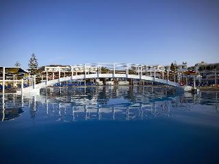 This charming resort hotel is set right next to a gorgeous sandy beach in the tiny resort town of Kokkini Hani, halfway between Heraklion and the larger resort town of Chersonissos. The hotel features 441 air-conditioned guest rooms, family rooms and bungalows with warm, cheerful décor, en suite marble bathrooms, mini bar, and satellite television. Guests can wake up to a satisfying breakfast buffet in the main restaurant and dine in the Chinese restaurant, and can find tasty treats and refreshing drinks throughout the day at the café, traditional tavern, and five hotel bars. The hotel also offers an extensive range of facilities and services to meet the needs of even the most discerning guests, including six swimming pools with two waterslides, a kid's club and playground, sports facilities and wellness centre, a wholly luxurious spa centre, and bilingual staff providing 24-hour reception, babysitting services, and an on-call doctor, among other services.